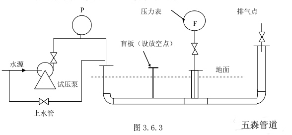 1)試壓系統的劃分:設計壓力相同的多段埋地管可串在一個試壓系統內試驗,設計壓力不同的管道要單獨試驗。
