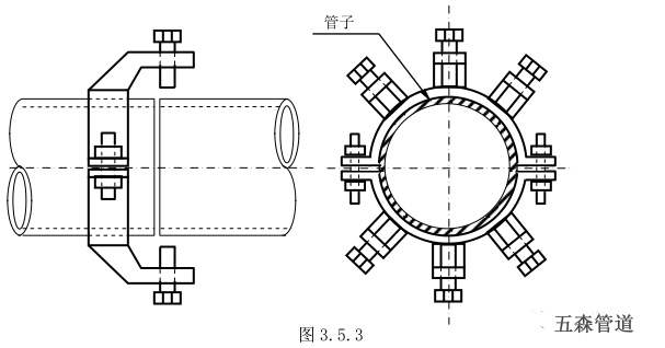 a)對于DN100以下的管子可直接進行焊口組對,DN150以上的管子應使用卡具組對,對接焊口可用圖3.5.3所示卡具。