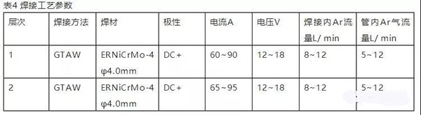 3. 焊接材料:焊絲采用ERNiCrMo-4φ2.0,其化學成分和機械性能見表2、表3,保護