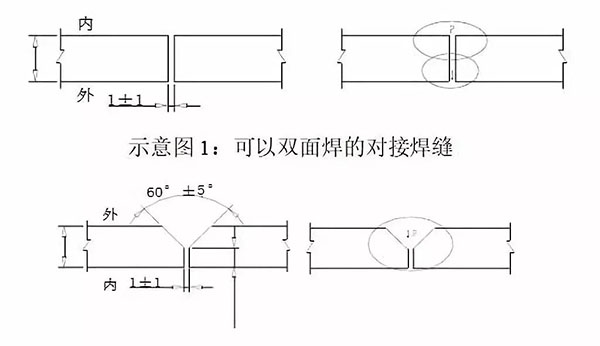 板厚3.0~4.5mm雙面焊時應在背面用小砂輪清根;只能單面焊時都應開坡口;