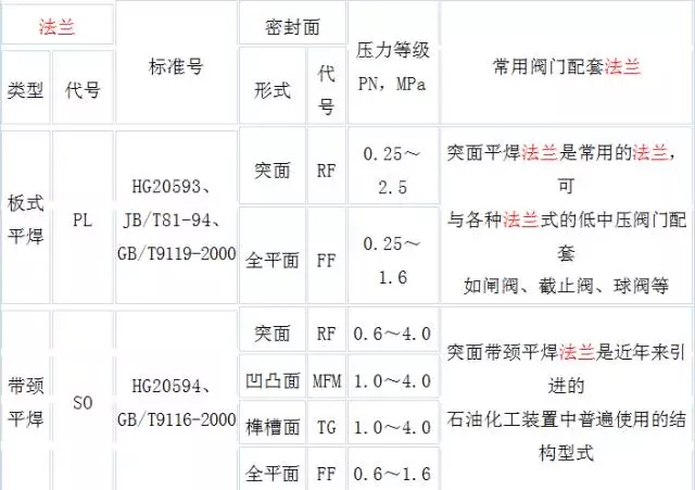 平焊法蘭、帶頸法蘭、對焊法蘭、環連接法蘭、承插法蘭、及盲板等。