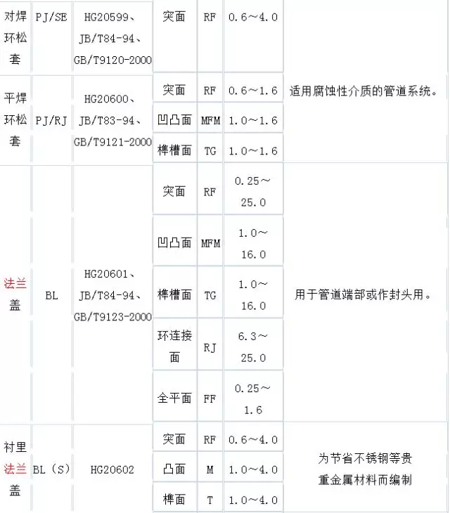 密封面形式:突面(RF)、凹凸面(MFM)、榫槽面(TG)、環連接面(RJ)