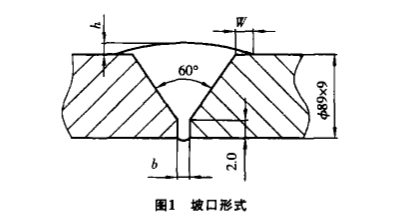 開坡口的目的在于保證焊透以及使焊接生產(chǎn)順利進行確保焊接質(zhì)量和接頭性能,減小焊接變形,降低焊接材料的消耗。管口組對是保證焊接質(zhì)量的先決條件,本研究采用V形坡口,如圖1所示。