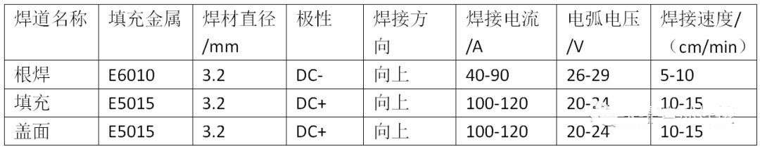 焊條電弧焊時,打底焊采用纖維素型焊條E6010,符合AWSA5.1的規(guī)定,直徑為3.2mm;填充、蓋面焊采用E5015焊條,符合GBT5117-1995的規(guī)定。藥芯焊絲半自動焊時,打底焊采用纖維素型焊條E6010,符合AWSA5.1的規(guī)定,直徑為3.2mm;填充、蓋面焊采用藥芯焊絲E71T8-Nil,符合AWSA5.29的規(guī)定,直徑為2.0mm,該焊絲具有操作性能好,焊接質(zhì)量高、抗風(fēng)能力強等優(yōu)點。