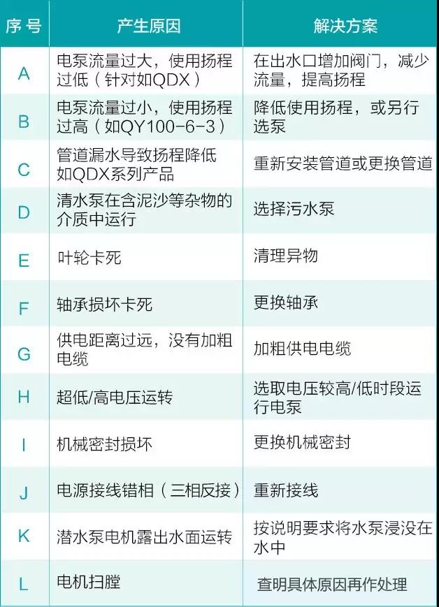 這些是造成水泵“病癥”的常見原因,并不是所有原因,實踐中處理故障,還因根據具體問題,實際分析,應遵從先外后里的原則,切勿盲目操作。