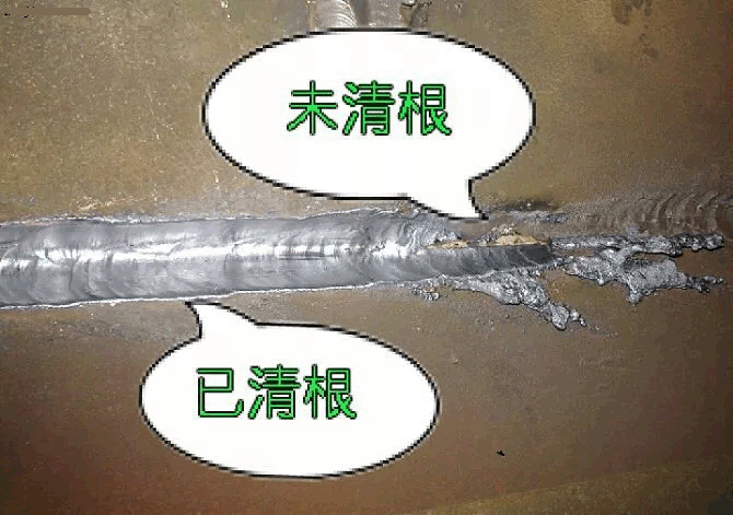 二、深度清理,仔細(xì)刨除加在焊縫中間的焊渣,氣孔。刨到焊縫成銀白色,無缺陷為止。