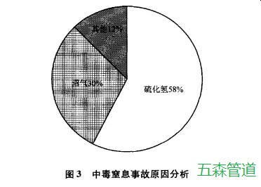 分析研究中分別對中毒窒息的物質進行了統計與分類。結果表明占總事故數57%的是硫化氫引起的中毒事件。占總事故31%的是沼氣引起的中毒事件。其他原因引起的事故占12%,經過分析還可以發現的是硫化氫引起的主要是中毒事故,沼氣引起的主要是窒息事故。