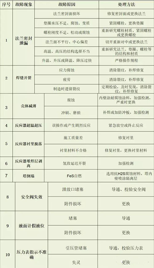 壓力容器常見故障(細(xì)節(jié))及處理方法