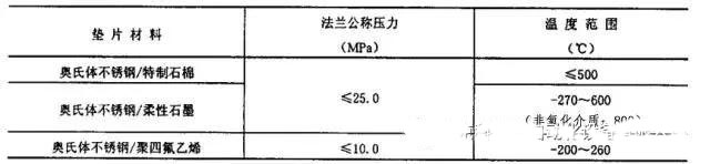b)劇毒,可燃介質或溫度高、溫差大、受機械振動或壓力脈動的管道宜采用纏繞式墊片,并符合表1的使用條件: