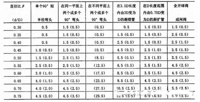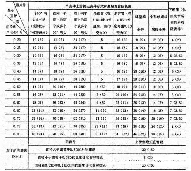 注: ①最短直管段的長度均以工藝管道直徑D的倍數表示。