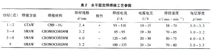 (1)水平固定,其焊接工藝參數見表2。
