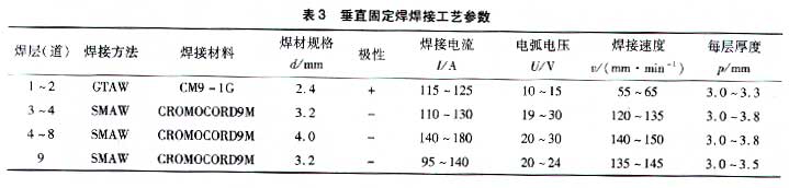 (2)垂直固定,其焊接工藝參數見表3。