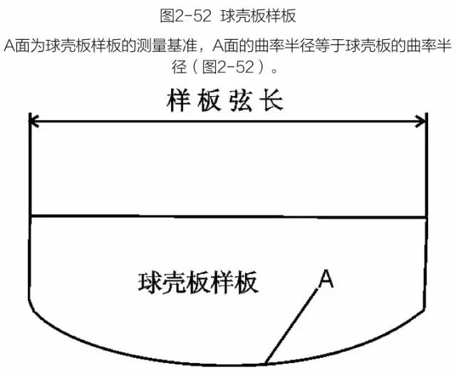 封頭間隙樣板是采用弦長相當于封頭內直徑的間隙樣板檢驗和測量封頭的內表面形狀公差,見圖2-49。