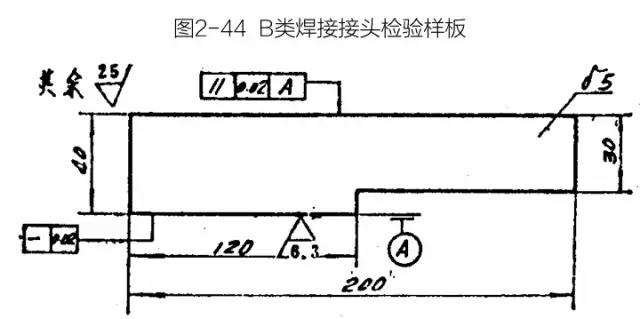 壓力容器筒體的B類焊接接頭的對口錯邊量、焊縫余高等可以用焊接檢測尺檢驗、測量。因尺寸和結構原因,用焊接檢測尺無法進行檢測時,則要采用B類焊接接頭檢驗樣板,見圖2-44、圖2-45。